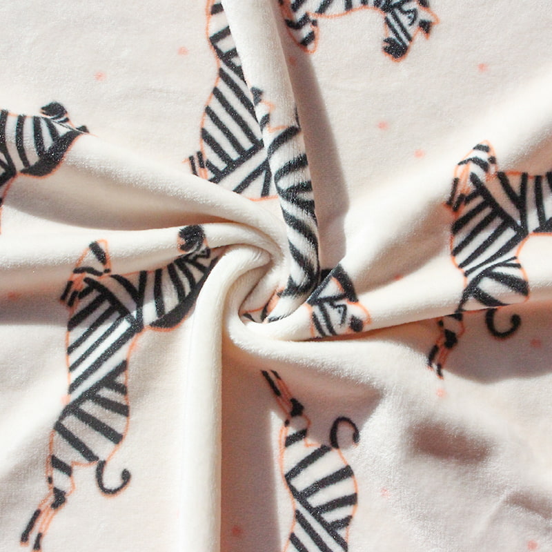 In summary, print super soft velvet has a wide range of applications in the field of apparel and home textiles due to its high elasticity, good dyeing performance, delicate and smooth texture, and applicability to a variety of printing processes.